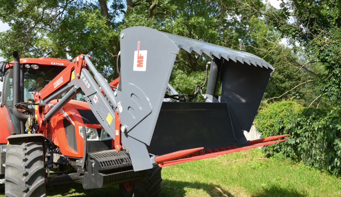 Нарізчик силосу - це пристрій, призначений для вибирання прямо з купи силосу. Надійна і міцна конструкція забезпечує надійну і тривалу роботу. Він оснащений двома циліндрами, що забезпечують більшу силу тиску при різанні матеріалу. Ножі виготовлені з високоякісної сталі. Те що, привертає увагу, це велика кількість зубів. Це рішення забезпечує необхідну міцність, а густе розташування зубів оберігає матеріал і запобігає його висипання під час транспортування. З метою підвищення стабільності і довговічності конструкції, введені два додаткових зміцнення з боків. Машина може бути прикріплена за допомогою систем EURO / SMS.